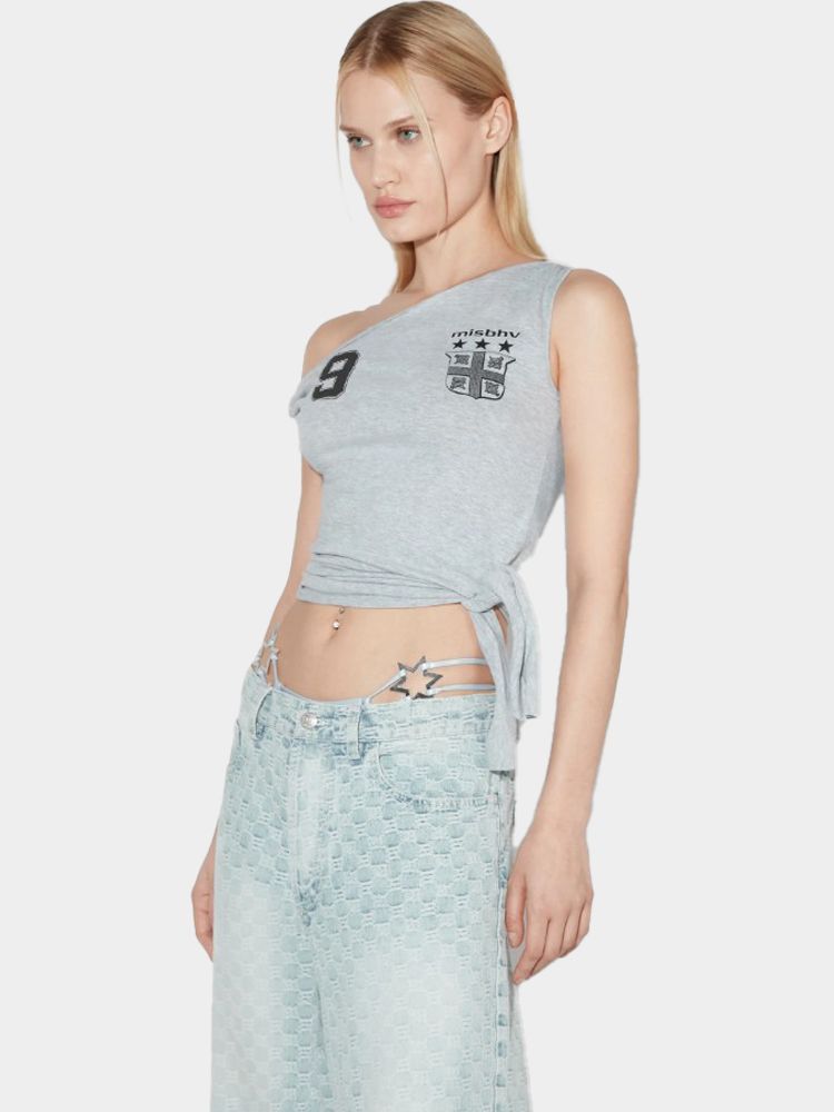 오프숄더 드레이프 풋볼 탑
